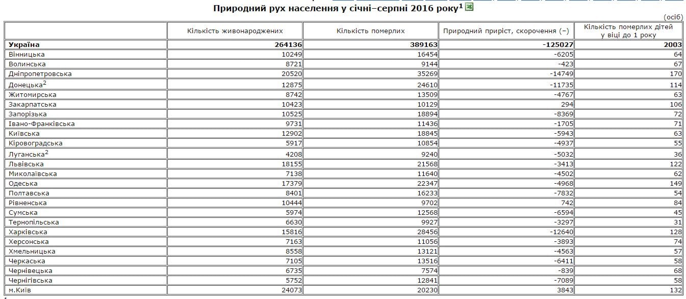 Напомним, по данным Госстата, только Закарпатская, Ровенская области и г.Киев показывают прирост населения. Во всех остальных областях Украины количество умерших превышает количество рожденных.