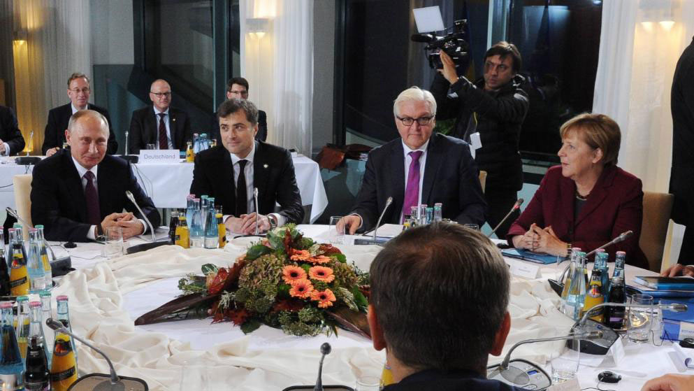 Немецкий таблоид Bild выразил свое возмущение присутствием на переговорах нормандской четверки в Берлине помощника Путина Владислава Суркова, назвав его "путинским палачом".