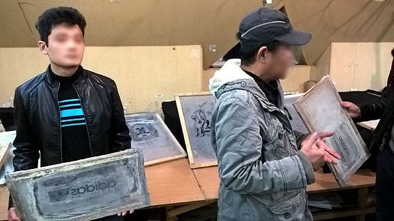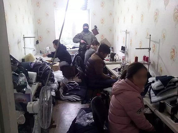 Оперативниками Департамента борьбы с преступлениями, связанными с торговлей людьми Национальной полиции Украины совместно с коллегами из Одесской области и следователями при поддержке бойцов столичной спецроты полиции особого назначения обнаружили 6 нелегальных цехов по пошиву одежды и сумок под брендами известных торговых марок.