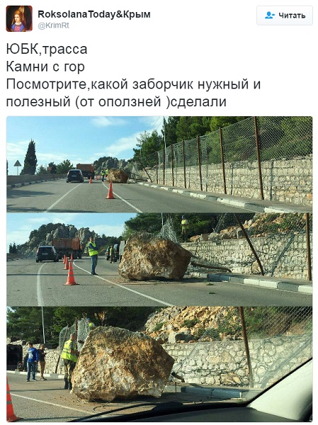 Как передают «Комментарии», огромный валун смел на своем пути антиоползневую защиту и выкатился на дорогу. К счастью, никто не пострадал.