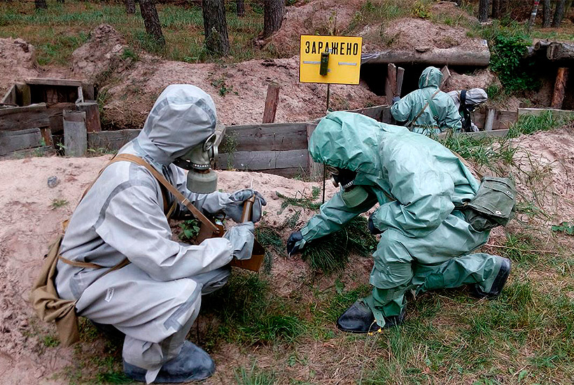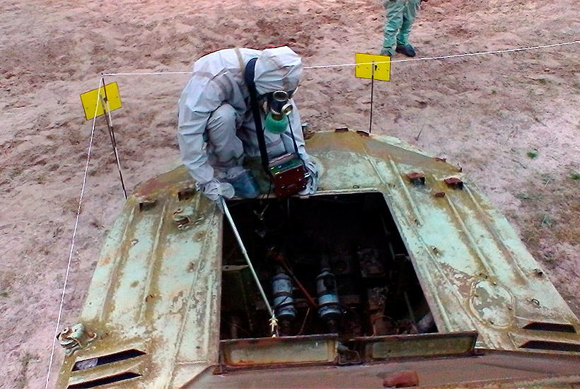 В течение полигонной практики гвардейцы определяли наличие ядовитых веществ с помощью приборов химической разведки, проявляли зараженность поверхности различных объектов, искали радиоактивные вещества с помощью военных дозиметрических приборов.