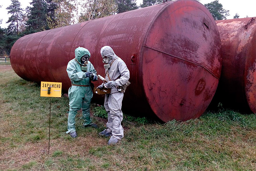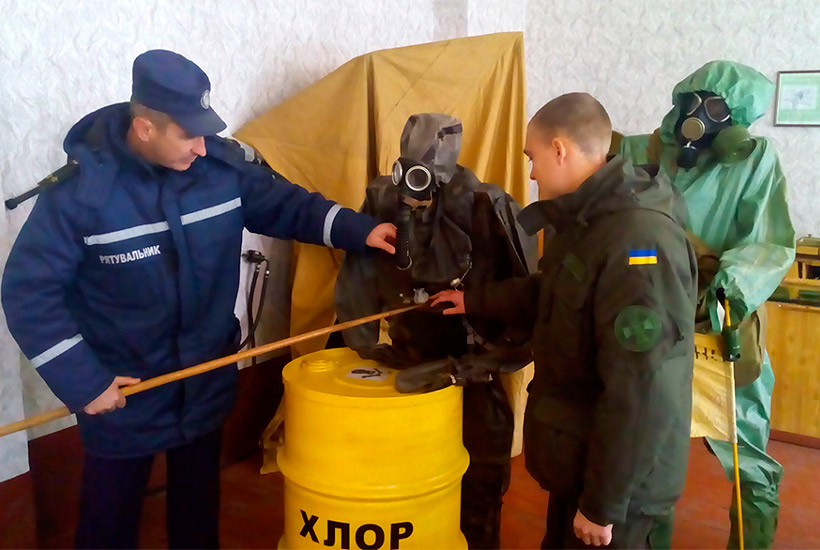 Под Харьковом на тактическом поле Слобожанской бригады в течение недели подразделения радиационной, химической и биологической защиты воинских частей Восточного территориального объединения повышали уровень профессионального мастерства на практике.