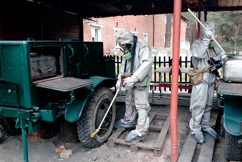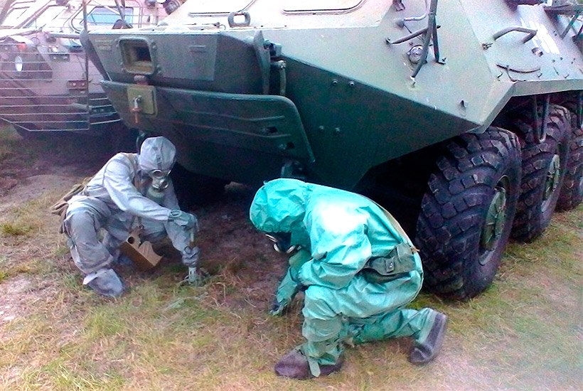 Также с использованием табельных средств бойцы попрактиковались в проведении частичной дегазации специальных машин. Кроме того военные «химики» научились в кратчайшие сроки определить уровень загрязнения окружающей среды.