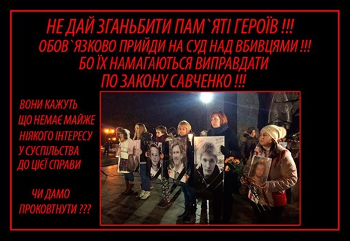 Але ми не вправі допустити, щоби російські найманці-ублюдки, які підірвали наших хлопців, уникли справедливої покари та вийшли з залу суду трошечки в обмочених шароварах і все!!!