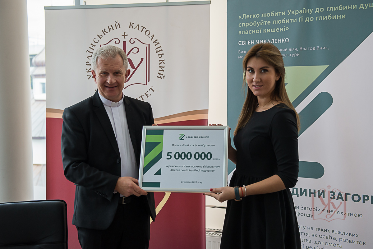 В рамках проекта «Реабилитация будущего» Фонд семьи Загорий выделил 5 млн. грн. на реализацию проекта Центра реабилитации при Школе реабилитационной медицины Украинского Католического Университета. Соответствующий договор был подписан 27 октября в Всемирный день эрготерапии во время визита представителей Фонда Семьи Загорий Украинского католического университета, сообщает пресс-служба фонда.