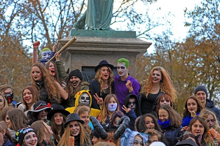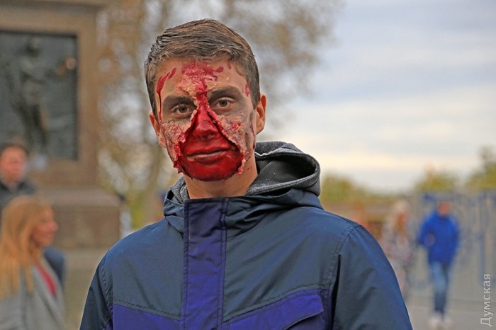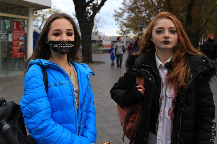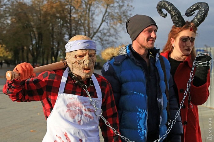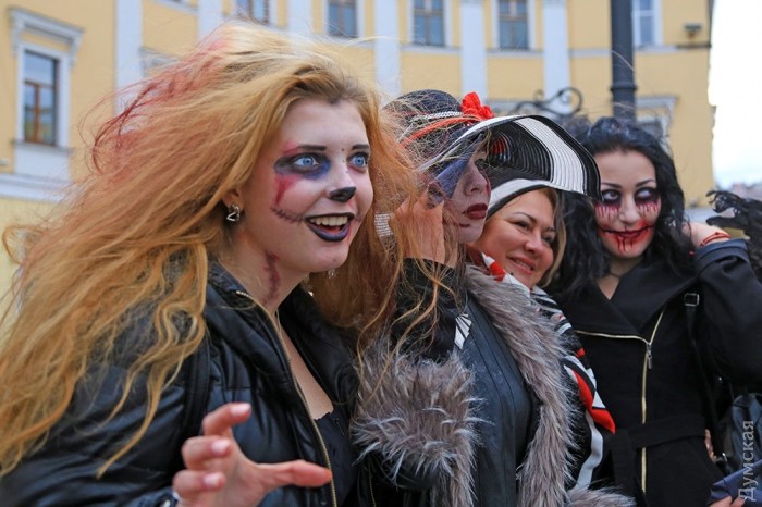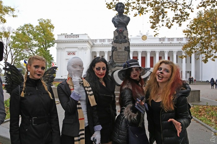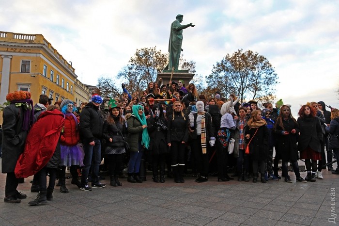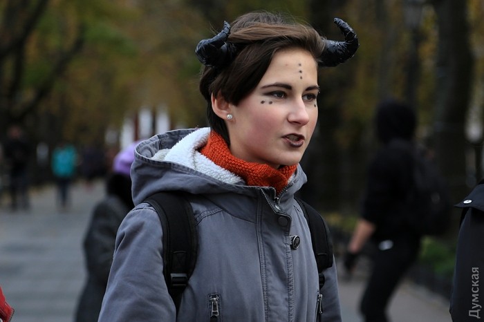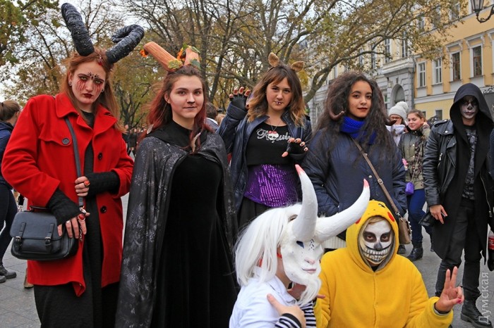 Сегодня, 30 октября, на Приморском бульваре Одессы собралось несколько десятков молодых людей, которые приняли участие в так называемом «Параде Зла» в честь Хэллоуина.