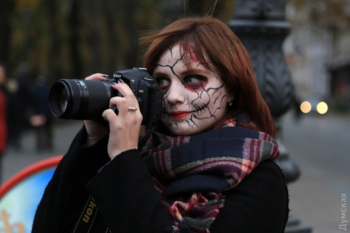 Несмотря на устрашающий вид, участников шествия никто не пугался. Было много смеха и взаимных шуток. К слову, тематический грим желающим делали прямо у Дюка.