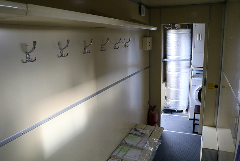 - В нем есть непосредственно прачечная, гардеробная, отделение для мытья в виде душевых кабин, а также технический пункт. Нагрев воды может осуществляться как от электричества, так и на твердом топливе, что значительно расширяет возможности и удобство использования комплекса, - рассказывает заместитель начальника управления вещевого и продовольственного обеспечения ГУ НГУ подполковник Артем Шевчук.