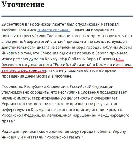 Примечательно, что опровержение своей пропаганды журналисты опубликовали в заметке под названием «уточнение». По сути, слова мэра Любляны были придуманы.