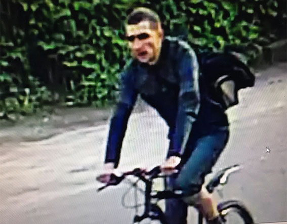 При себе имел спортивную сумку «Nike» белого цвета. Двигался на велосипеде черного цвета, на сиденье и руле присутствуют детали красного цвета.