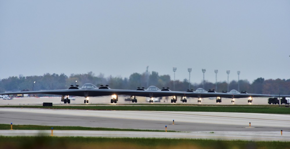 Так, стратегические бомбардировщики ВВС США B-2 Spirits взлетели с авиабазы Whiteman в режиме минимального интервала. Аналогичный взлет произвели и с авиабазы Minot красавцы B-52H Stratofortresses (использующие так же ракеты AGM-86B на внутрифюзеляжной пусковой установке и AGM-129А). В то же самое время с авиабазы Fairchild в небо поднялись самолеты-заправщики KC-135R Stratotankers из 92-й эскадрильи заправщиков ВВС США.
