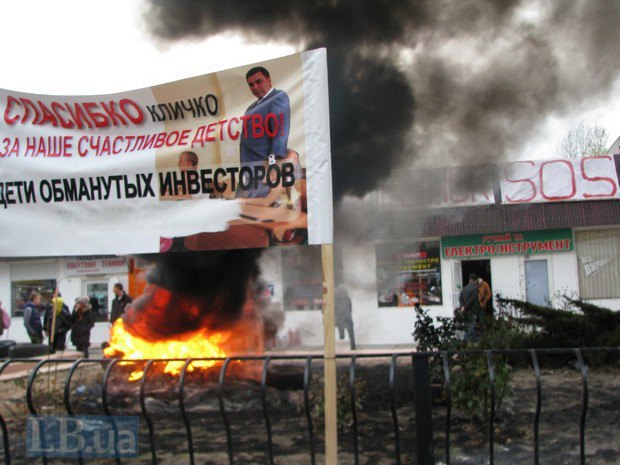 В субботу, 5 ноября, в Киеве на улице Ревуцкого возле станции метро "Харьковская" люди, протестующие против сноса рынка, перекрыли проезжую часть и зажгли шины, сообщает Главное со ссылкой на LB.ua.