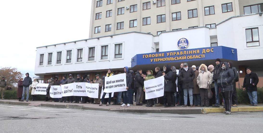 Более ста пятидесяти людей пришли пикетировать здание Главного управления ДФС в Тернопольской области, сообщает УРА-информ. Поддержать протестующих, требовавших прекратить давление на аграриев Тернопольщины приехал и «Автомайдан» из Киева. Председатель общественной организации «Автомайдан Киев» и член Люстрационного комитета Дмитрий Карп заявил, что фискальная служба своими незаконными действиями и “заказными” преследованиями загоняет сельское хозяйство в тупик.