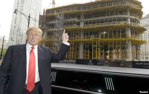 Дональд Трамп на стройке Международной гостиницы и башни Трампа в Чикаго, 2006 год