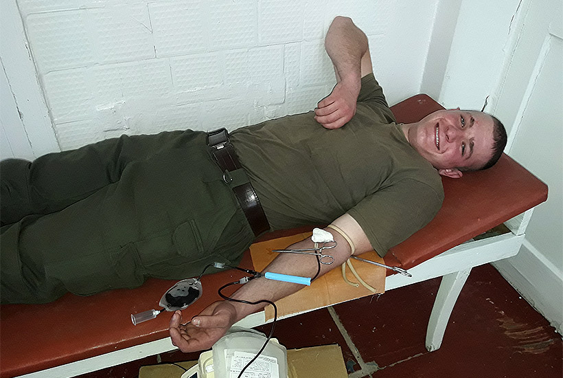 Для военных Нацгвардии, выполняющих задачи в зоне проведения АТО стало уже доброй традицией оказывать помощь тем, кто в этом нуждается. На этот раз гвардейцы приняли участие в благотворительной акции сдачи крови для раненых бойцов АТО. 8 военнослужащих Национальной гвардии Украины на добровольной основе сдали кровь в местной больнице Покровска.