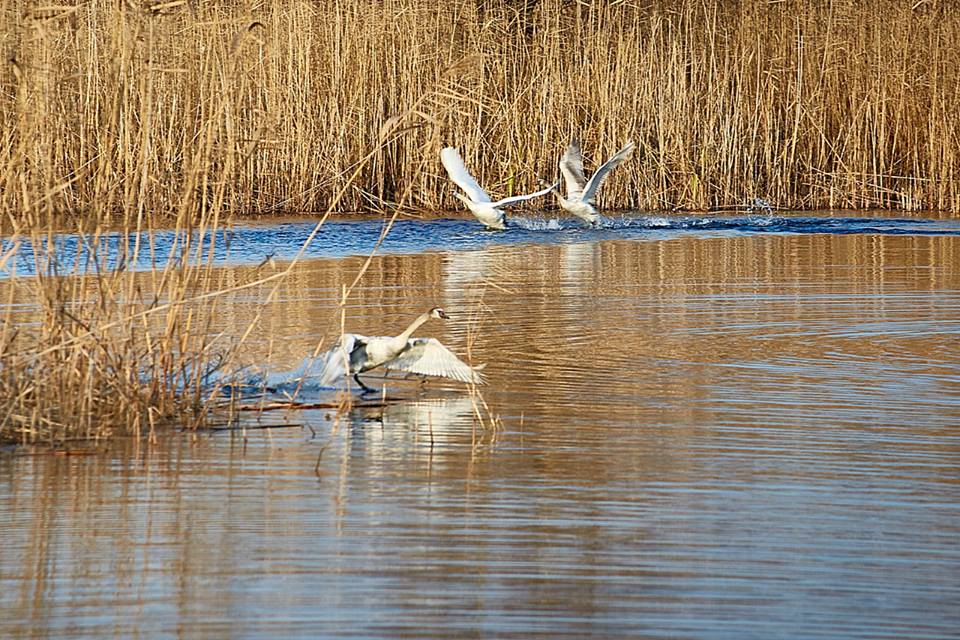 Восемь краснокнижных птиц появились на озере в поселке Песочин еще в начале сентября. С тех пор они так и не отправились в теплые края. Местные больше месяца с тревогой наблюдают за птичьей семьей. Двое молодых лебедят уже погибли. Чтобы спасти лебединую семью, пришлось даже купить браконьерские сети.