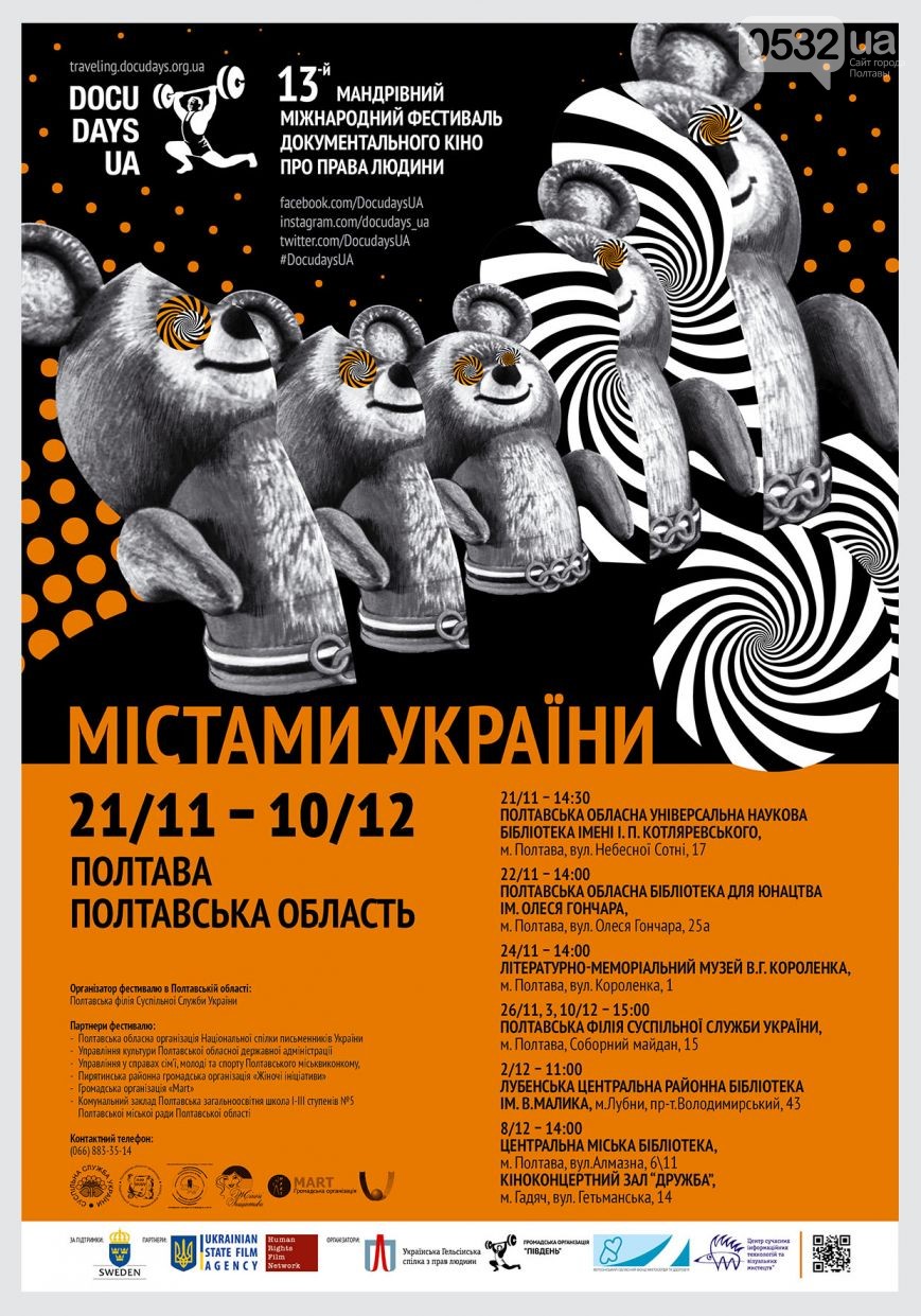 21 ноября на Полтавщину прибывает XIII Странствующий международный фестиваль документального кино о правах человека Docudays UA.