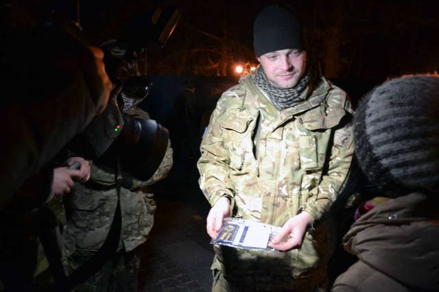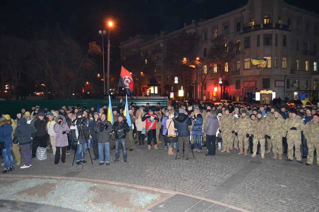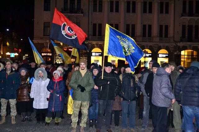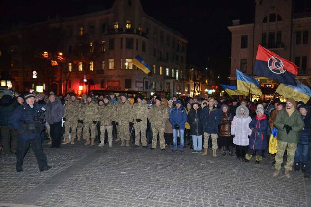 Как отмечает SQ, у памятника собрались около 500 человек. Они держали в руках флаги различніх общественных организаций: "Громадська самооборона", "Молодежный националистический конгресс". На площадке волонтеры собирают средства. Кроме того, участникам акции раздавали бутерброды и горячий чай.