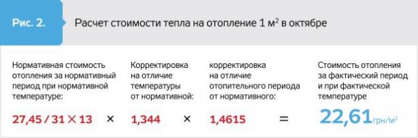 Происхождение этой цифры, по его словам, связанно именно с двукратным учетом увеличения отопительного периода: (27,45/31*13)*1,344*(1,4615)2 = 33,05 грн/кв. м