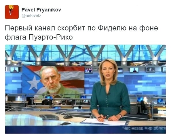 "Первый канал скорбит по Фиделю на фоне флага Пуэрто-Рико", - написал он.