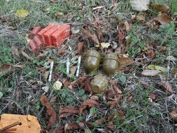 Правоохранители изъяли из схронов противотанковый гранатомет РПГ-22, два выстрела к гранатомету РПГ-7, три гранаты РГД-5 и Ф-1, шесть тротиловых шашек общим весом 825 граммов и один брикет пластида весом шестьсот граммов.