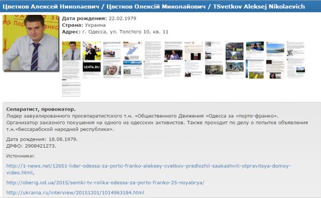 "Дорогие харьковчане, в ближайшее время в ваш город приезжает специалист по сепаратизму и фигурант уголовного дела по т.н. "Беcарабской республике" Цветков Алексей.