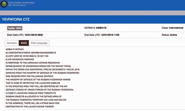 В системе Управления гражданской авиации США появилась заявка от Минобороны государства-агрессора РФ о возможных ответных мерах во время проведения Украиной ракетных стрельб вблизи временно оккупированного Крыма. Об этом говорится на сайте FAA, пишет liga.net