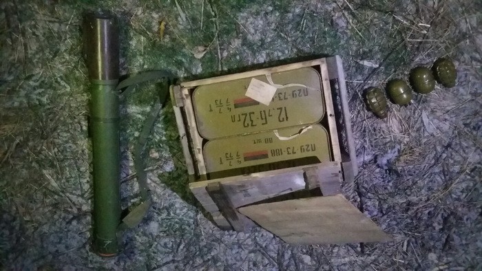 Правоохранители изъяли из схронов, оборудованных вблизи н.п. Бердянское и Чермалик Донецкой области две реактивные противотанковые гранаты РПГ-22, пять минометных мин, четыре гранаты, более тысячи патронов различного калибра и 400 г тротила.