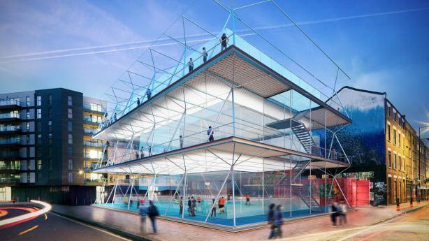 Архитектурная фирма AL_A из Великобритании разработала концепцию Pitch/Pitch, которая позволяет уместить несколько небольших футбольных полей друг над другом.