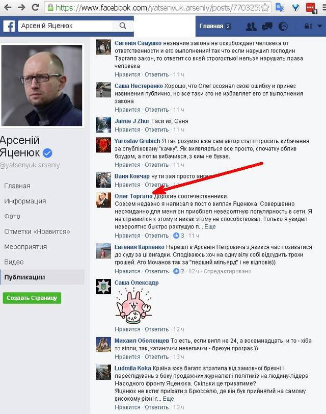 Об этом Торгало написал в комментариях на странице Арсения Яценюка в Фейсбуке, передает Цензор.НЕТ.