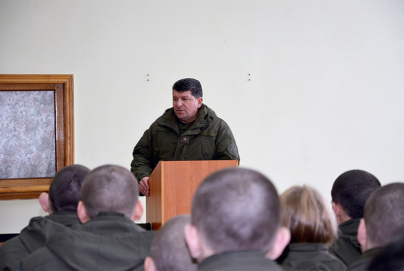 Встречу генерал-майор Ярослав Сподар начал с краткой истории и задач, которые выполняют войска. Он рассказал солдатам о том, какой социальный пакет и перспективные возможности существуют у военнослужащих, которые решили перейти на контрактную службу. В ходе беседы заместитель командующего привел примеры героических поступков бойцов Национальной гвардии, память о тех, кто отдал свою жизнь, выполняя воинский долг, почтили минутой молчания.