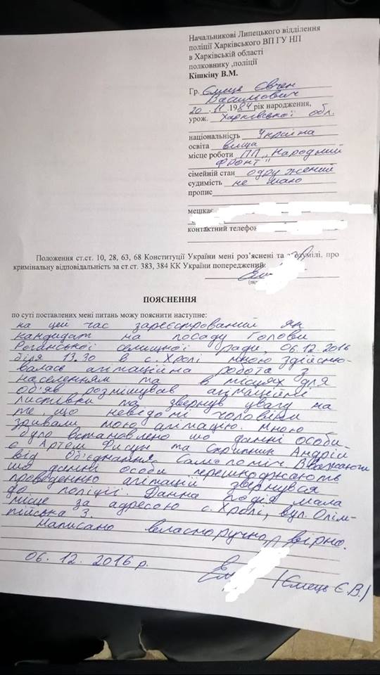 Вызвал полицию, дал пояснения, дальше - дело за правоохранителями. Хотелось только поинтересоваться у руководства «Самопомощи» - это у всей партии в норме или Фисун – досадное недоразумение?!», - написал Емец.