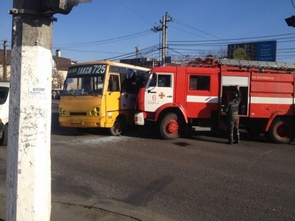 Как сообщает пресс-служба Патрульной полиции Одессы, ДТП случилось сегодня на улице Дмитрия Донского. Водитель маршрутки поворачивал на Люстдорфскую дорогу и не пропустил пожарную машину, которая ехала с включенной сиреной, мигалками и дополнительным сигналом гудка.