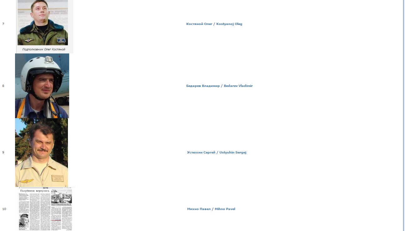 Волонтеры установили личности российских пилотов отдельного истребительного авиаполка ВВС Северного флота РФ, которые входят в состав экипажа авианесущего крейсера "Адмирал Кузнецов".