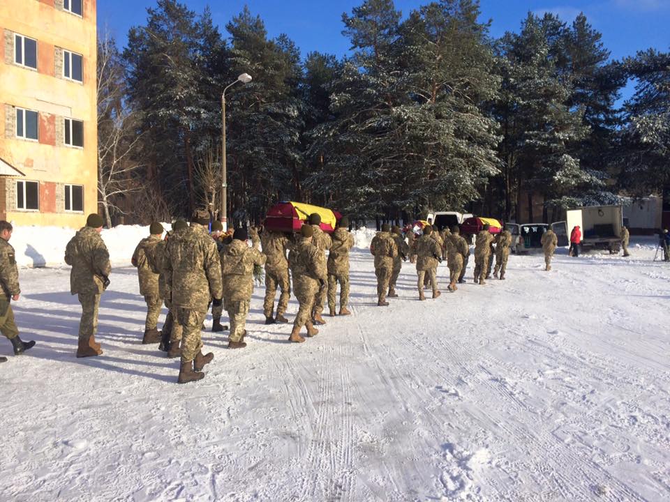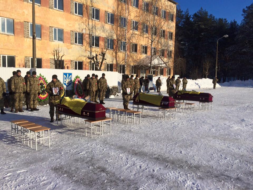 Сослуживцы, родные и близкие проводят в последний путь троих военнослужащих 92-й отдельной механизированной бригады, погибших в зоне АТО 10 декабря.