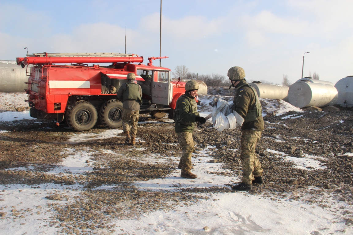За такою легендою в районі проведення АТО було проведено спільні навчання штатного пожежного підрозділу однієї із військових частин та рятувальників Державної служби надзвичайних ситуацій України в Донецькій області.