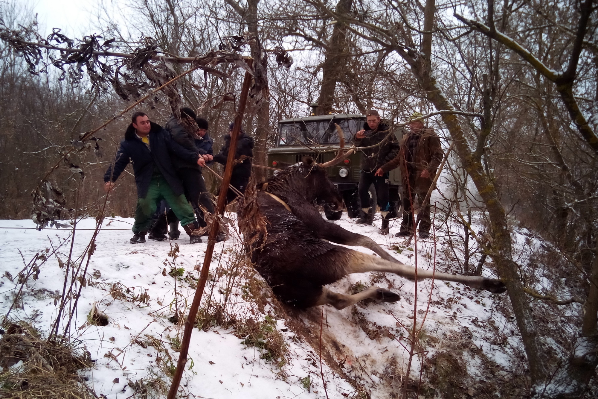 Сегодня на пункт связи Изюмского районного отдела ГУ ГСЧС Украины в Харьковской области поступило сообщение о том, что вблизи с. Донецкое в реке Северский Донец находится взрослый лось, который не может выбраться на берег.
