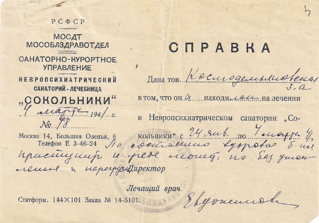 Карикатурист и бывший психиатр Андрей Бильжо написал в Insider, что "читал историю болезни Зои Космодемьянской, которая хранилась в архиве психиатрической больницы имени Кащенко", и сообщил, что "она страдала шизофренией".