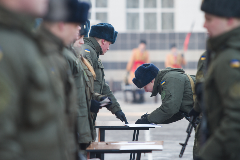 Юноши, прошедшие занятия на учебных сборах и получившие боевое оружие, клялись быть верными и преданными народу Украины, добросовестно и честно выполнять воинский долг. На церемонию принятия присяги были приглашены ветераны Академии родители и родные гвардейцев, которые с восторгом наблюдали за военным ритуалом. Поздравления для солдат от родителей и командиров, исполнения государственного гимна Украины и выстрелы казацкой пушки являются неотъемлемой частью праздника принятия присяги.