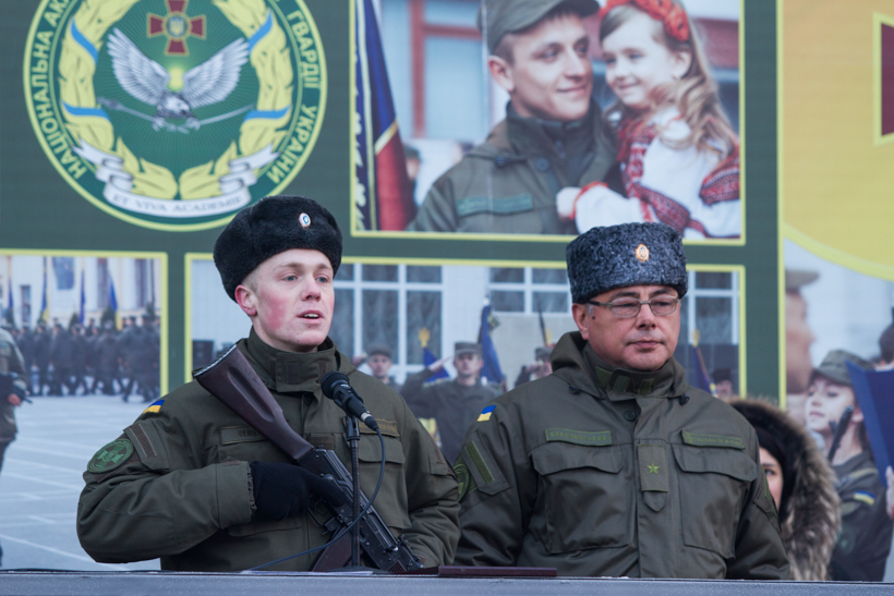 «Сегодня принимают военную присягу настоящие мужчины, которые решили стать на защиту нашей независимой Родины. Вам выпала судьба служить в крайне важный момент для всего украинского народа. Отдельно хочу поблагодарить родителей нашего молодого пополнения, которые воспитали настоящих патриотов Украины. Я желаю новоиспеченным гвардейцам ратной службы, мирного неба, здоровья и вдохновения », - поздравил собравшихся и.о. начальника Национальной академии Национальной гвардии Украины генерал-майор Сергей Соколовский.