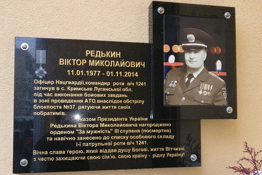 Днями гвардійці військової частини 1241 Національної гвардії України взяли участь у відкритті меморіальної дошки лейтенанту Віктору Редькіну.