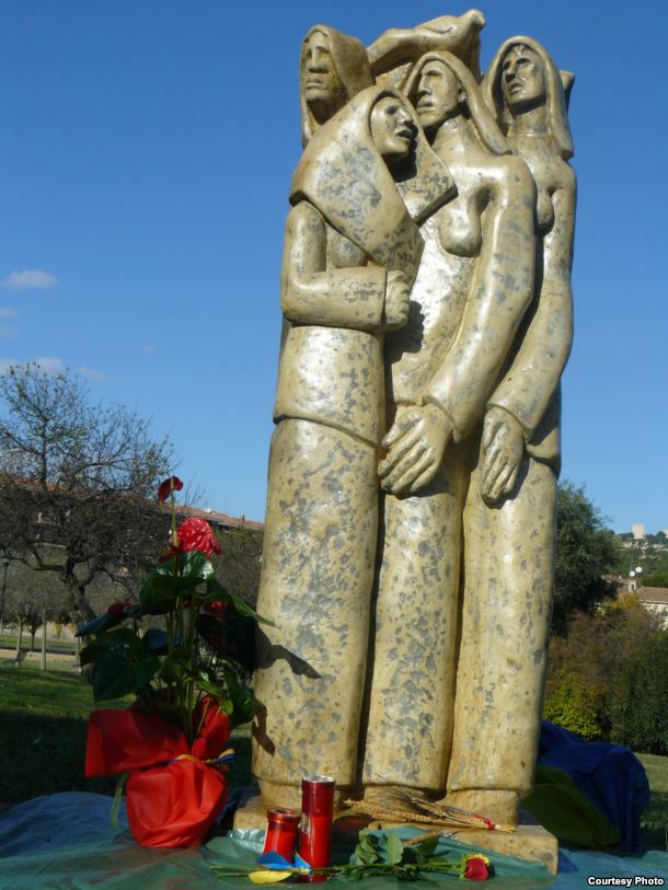 «Скульптура уособлює п’ять жіночих фігур зі страждальним виразом обличчя, але притаманною їм гідністю», – розповів Радіо Свобода автор монумента , сардинський скульптор Армандо Лекка.
