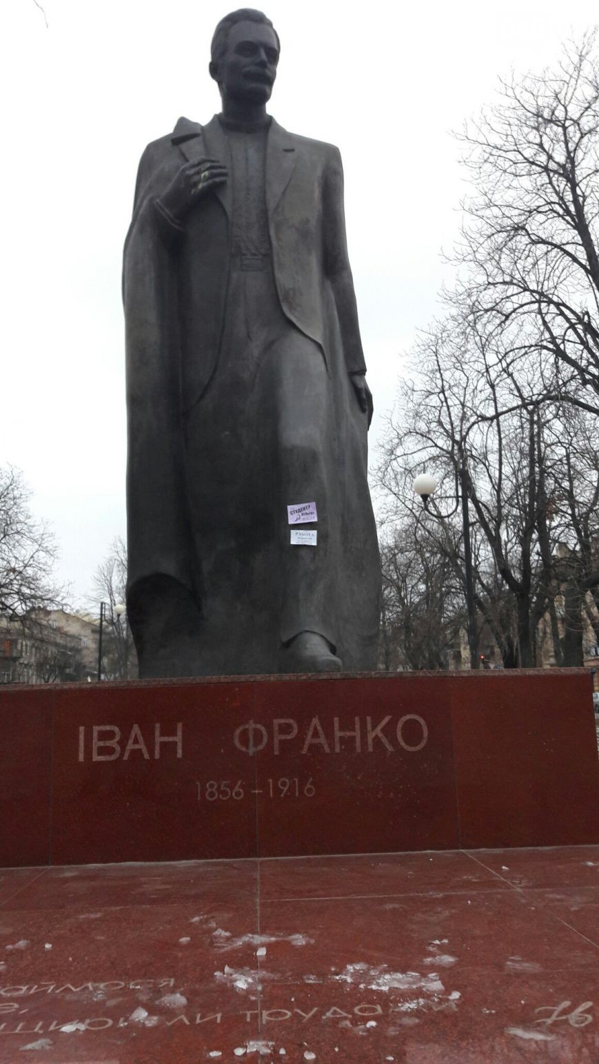 В Одессе памятник Ивану Франко страдает от уличной расклейки объявлений.