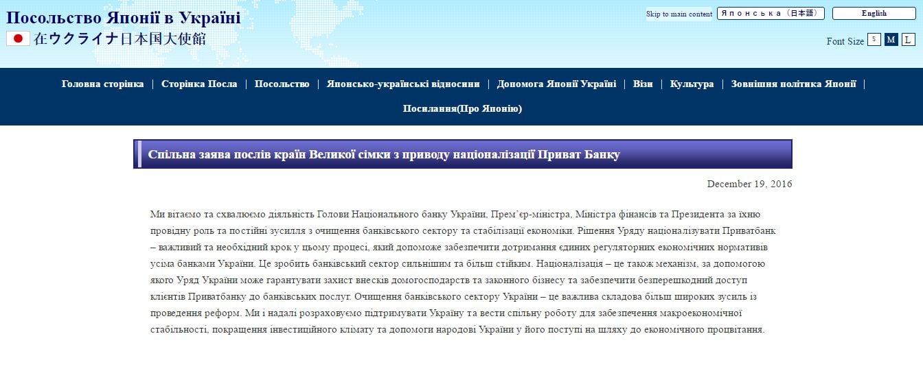 Послы стран-членов G7 полагают, что национализация позволит гарантировать защиту вкладов физлиц и бизнеса и обеспечит им доступ к банковским услугам.