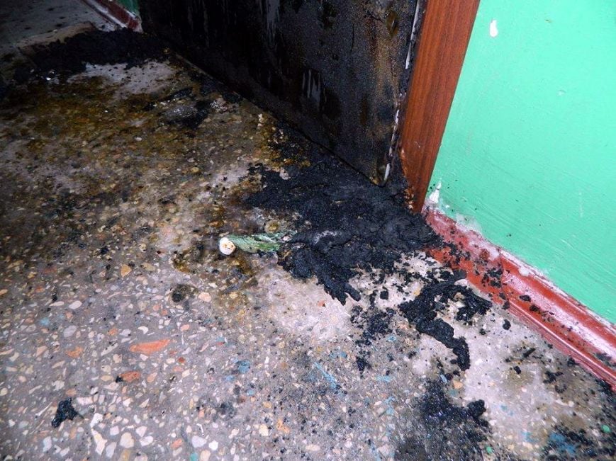 Те, що це був умисний підпал, жінка не сумнівається: під дверима лишилися рештки розплавленої пляшки, а також ганчір’я, промочене у пальному.