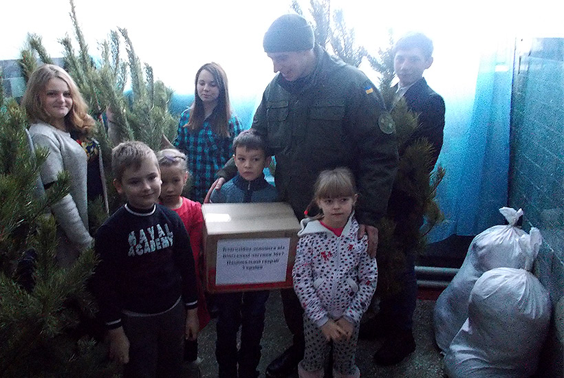 Бойцы батальонной группы 3 бригады оперативного назначения посетили местные общеобразовательные школы №14, 15 города Покровска Донецкой области и вручили детям «Лесных красавиц» к Новому году.