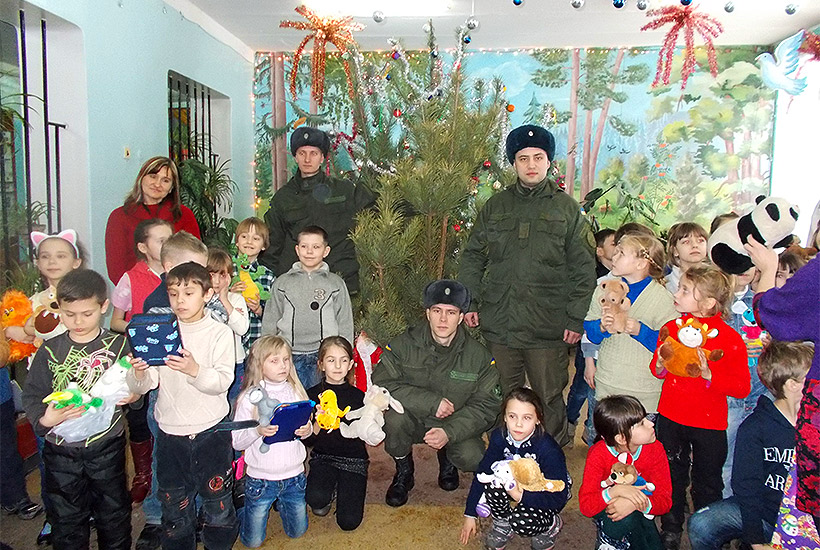 Накануне Нового года военнослужащие части пришли в гости к ребятам, которые учатся в Славянской общеобразовательной школе-интернате № 1 с подарками. Гвардейцы поздравили детей с наступающими новогодними и Рождественскими праздниками, пожелали малышам крепкого здоровья, успехов в учебе, осуществления всех заветных желаний и подарили им новогоднюю елку, а также украшения для нее, игрушки и интересные настольные игры.
