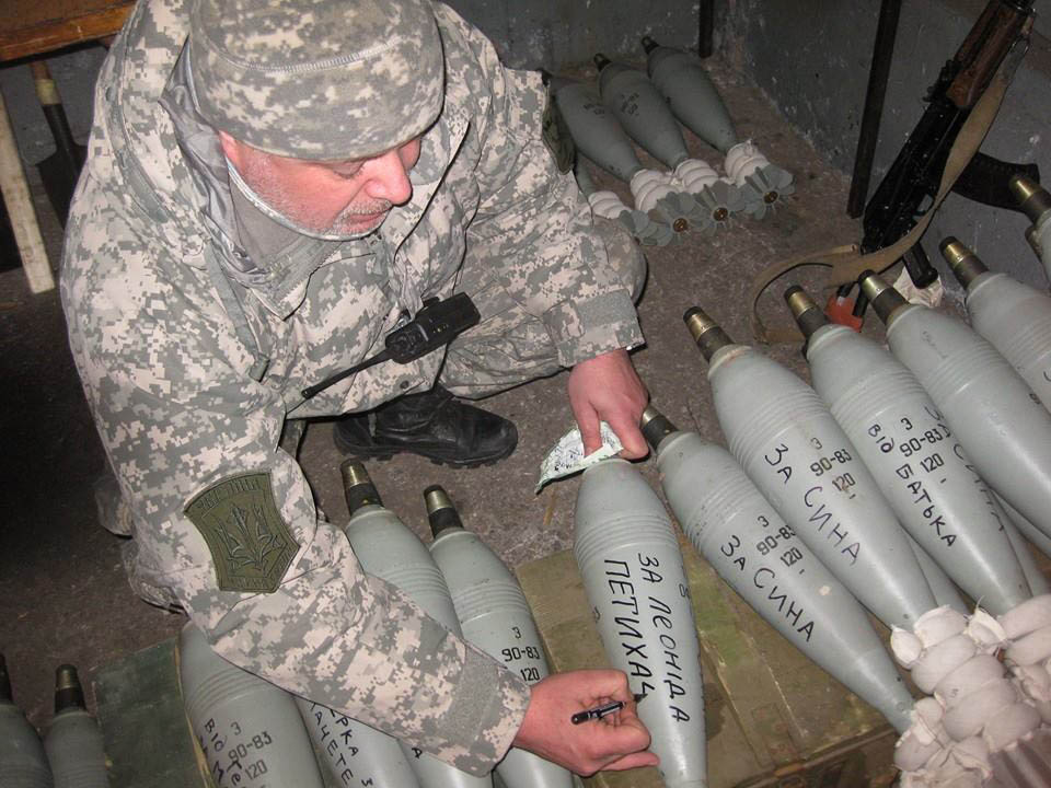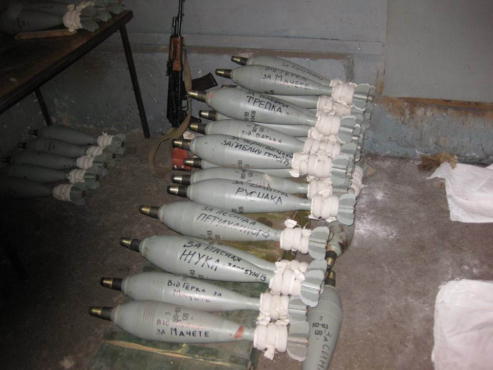 Фотофакт: Отец мстит за сына, убитого в зоне АТО 24 декабря 2016 10:25 Это отец убитого российскими оккупантами сына. Теперь на каждой мине, которую отец посылает российским убийцам, он пишет: "За сына от отца"!