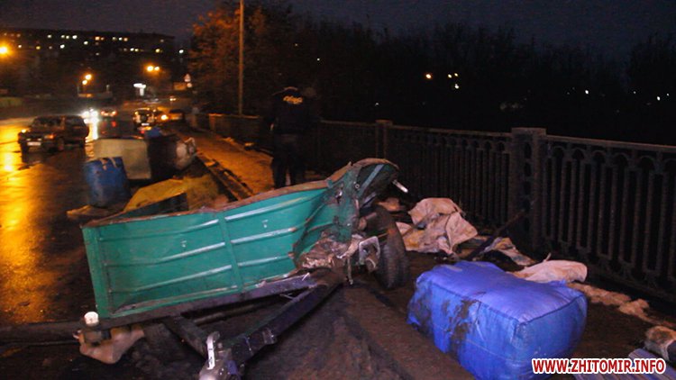 Volkswagen двигался по ул. Жуйко на выезд из города, при въезде на мост водитель не справился с управлением – на мокрой дороге автомобиль занесло, он выехал на встречную полосу и врезался в «Жигули» с прицепом. После удара Volkswagen понесло по дороге, и он проехал еще примерно 200 метров, цепляя отбойники.