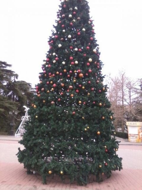"Елка была вся в игрушках, от самого низа и до верха. Вот что осталось. Неужели вы нищеброды такие, что не можете себе шар за 100 рублей купить? Вечно для вас старается город. Украшает, а вы как свиньи", – подписалась под фотографией крымчанка.